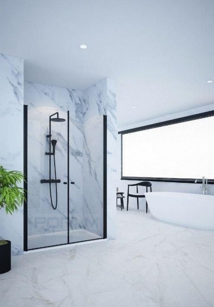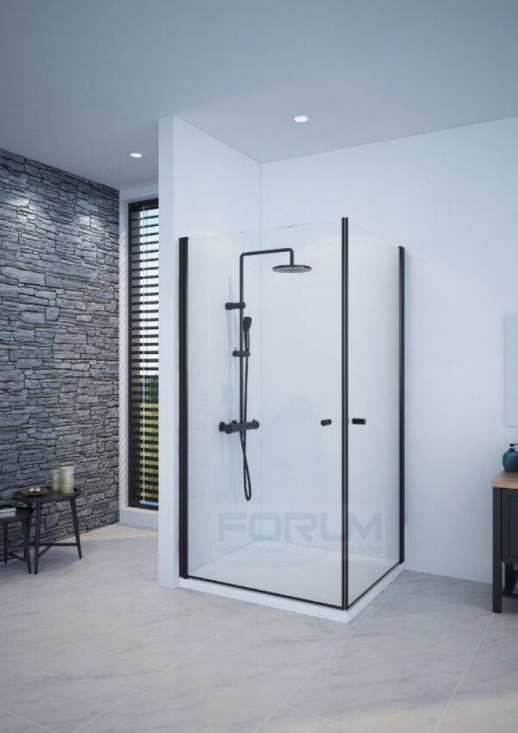 מקלחון פינתי 6 ממ שחור 2 דלתות פנימה והחוצה 80 על 80 או 90 90 גובה 185 פס חלבי