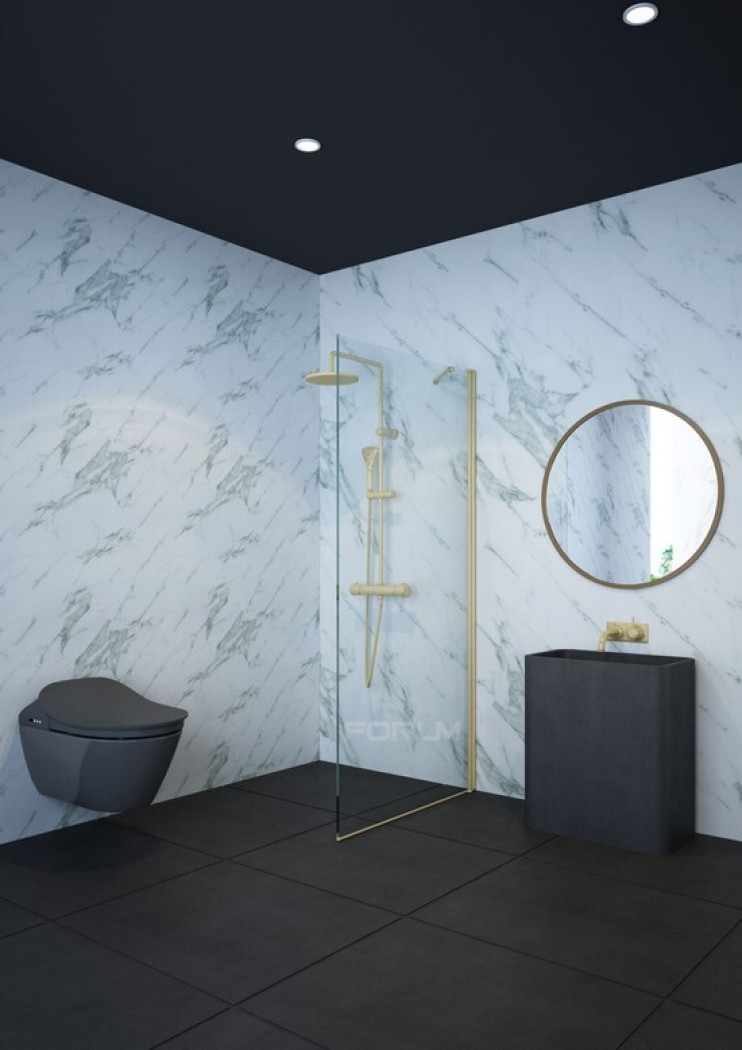 מקלחון 6 ממ מחוסם זהב מט דופן קבועה גובה 185 רוחב 70 עד 110