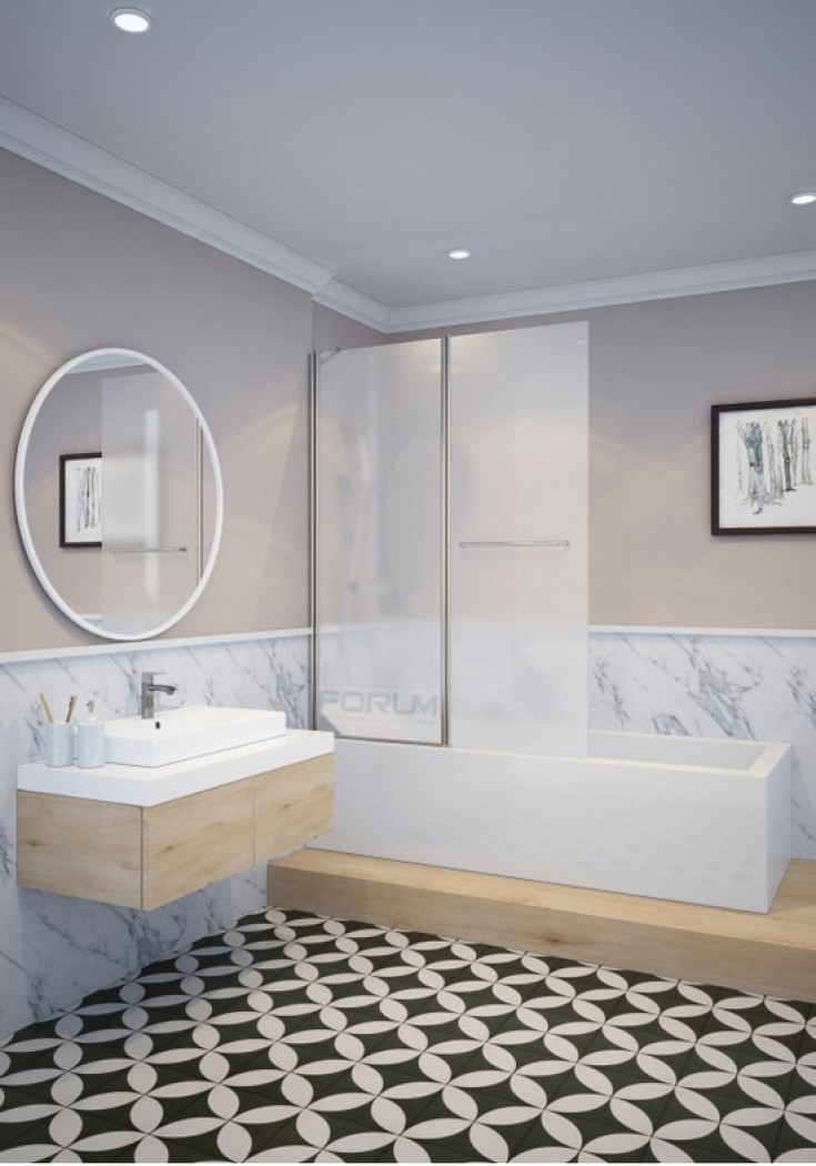 אמבטיון 6 ממ מחוסם ניקל זכוכית חלבי אייסי גובה 140 קבוע פלוס דלת פנימה והחוצה
