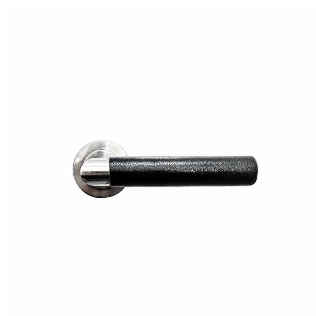 זוג ידיות נירוסטה עטוף עור שחור פלוס רוזטות