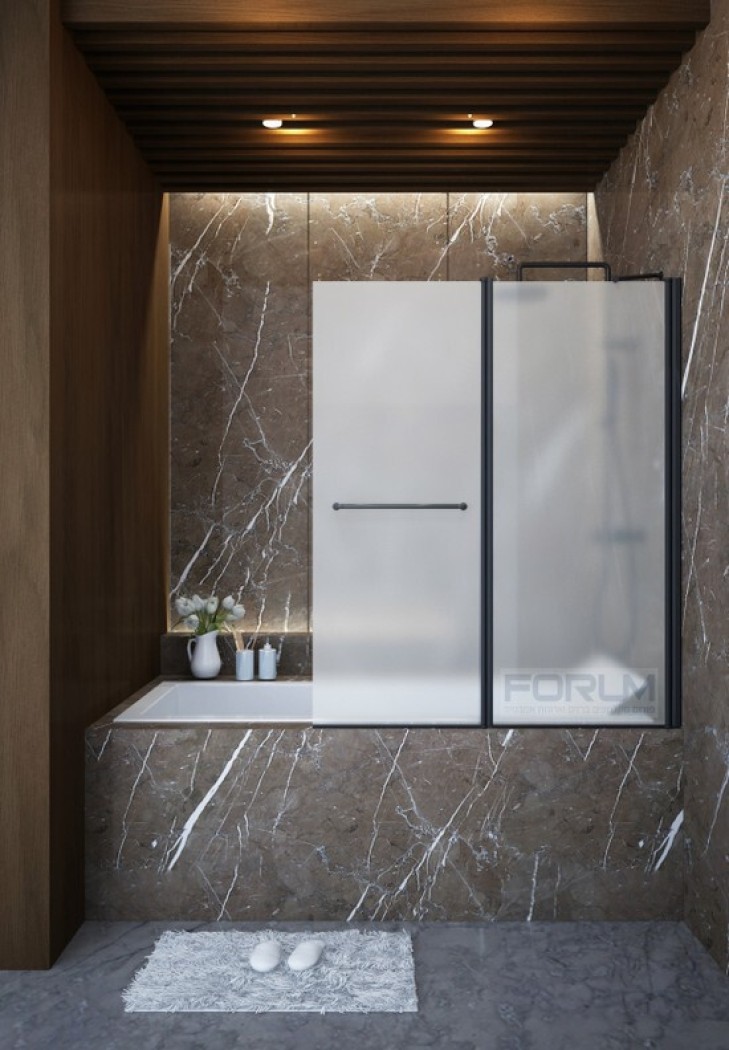פרטי מוצר אמבטיון הרמוניקה פרזול שחור זכוכית חלבי גובה 140 רוחב 120