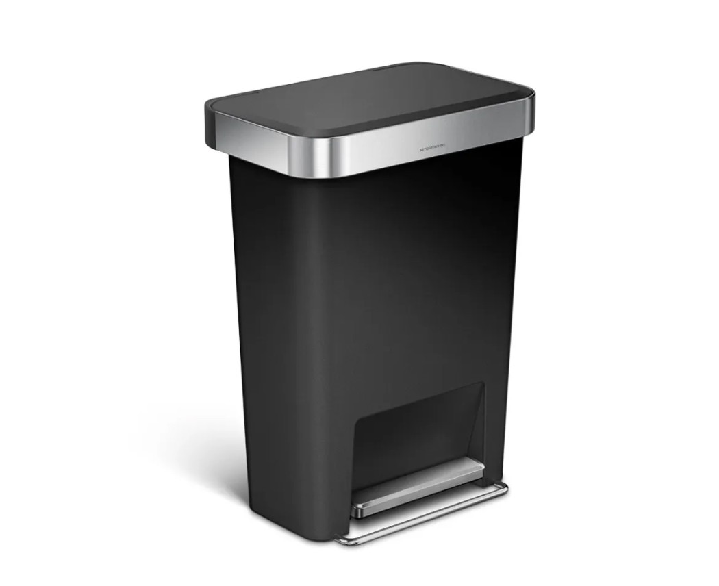 פרטי מוצר פח פלסטיק שחור שוליים נירוסטה 45 ליטר
