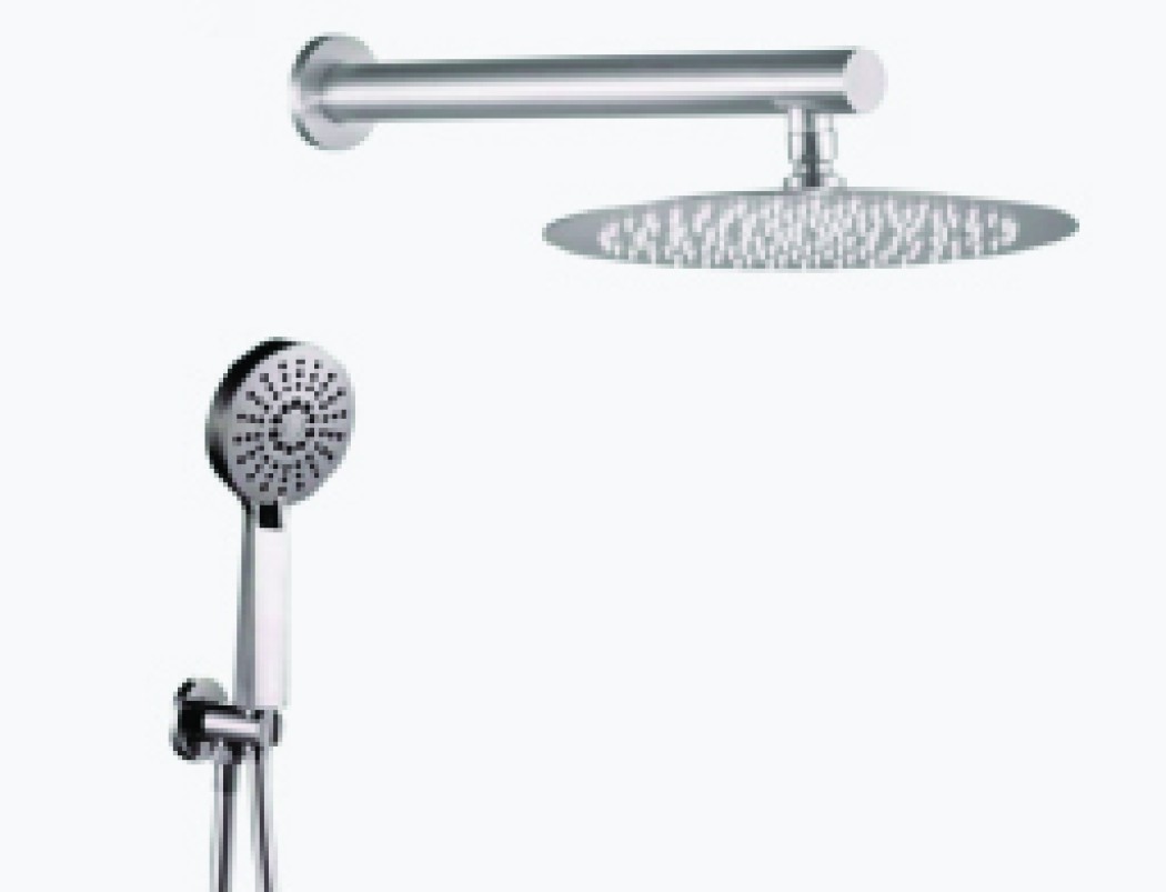 סט 5 מוצרים בראסס למקלחת כרום ניקל ראש 25 נק מים עם מאחז למזלף צינור 1.5 מזלף יד מוט עגול 40 סמ