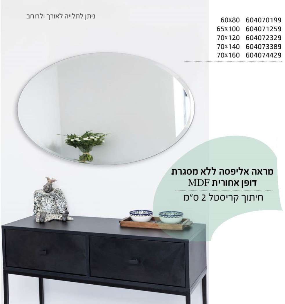 מראה אליפסה 60 על 80 ללא מסגרת