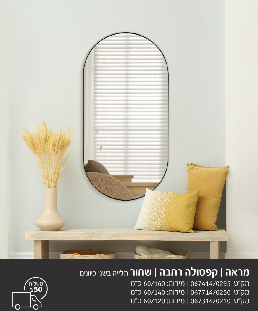 מראה קפסולה עץ במידות שרשום