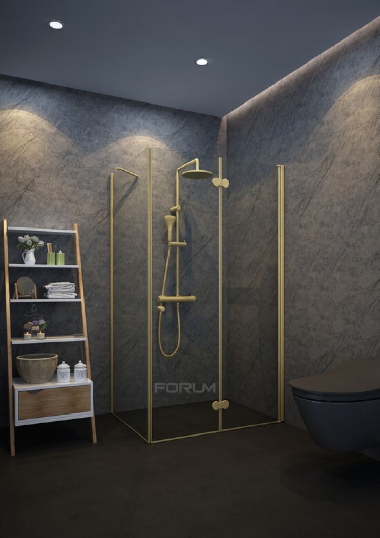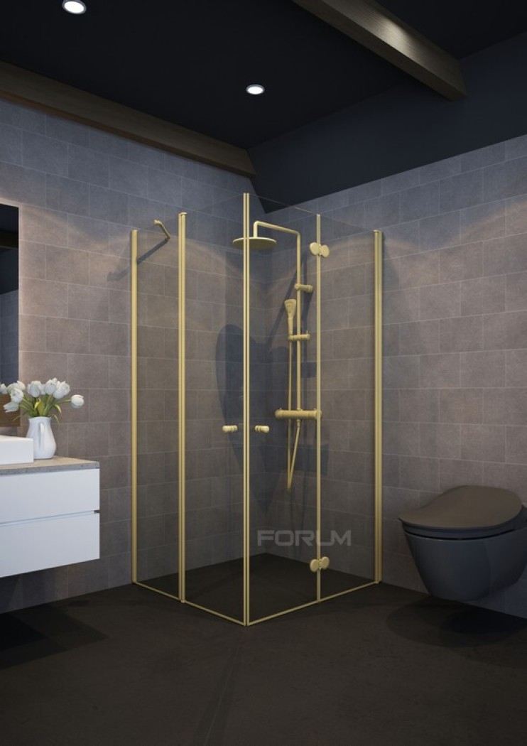 מקלחון פינתי 2 דלתות פנימה והוצה גובה 185 6 ממ 80 על 80 זהב או 90 על 90